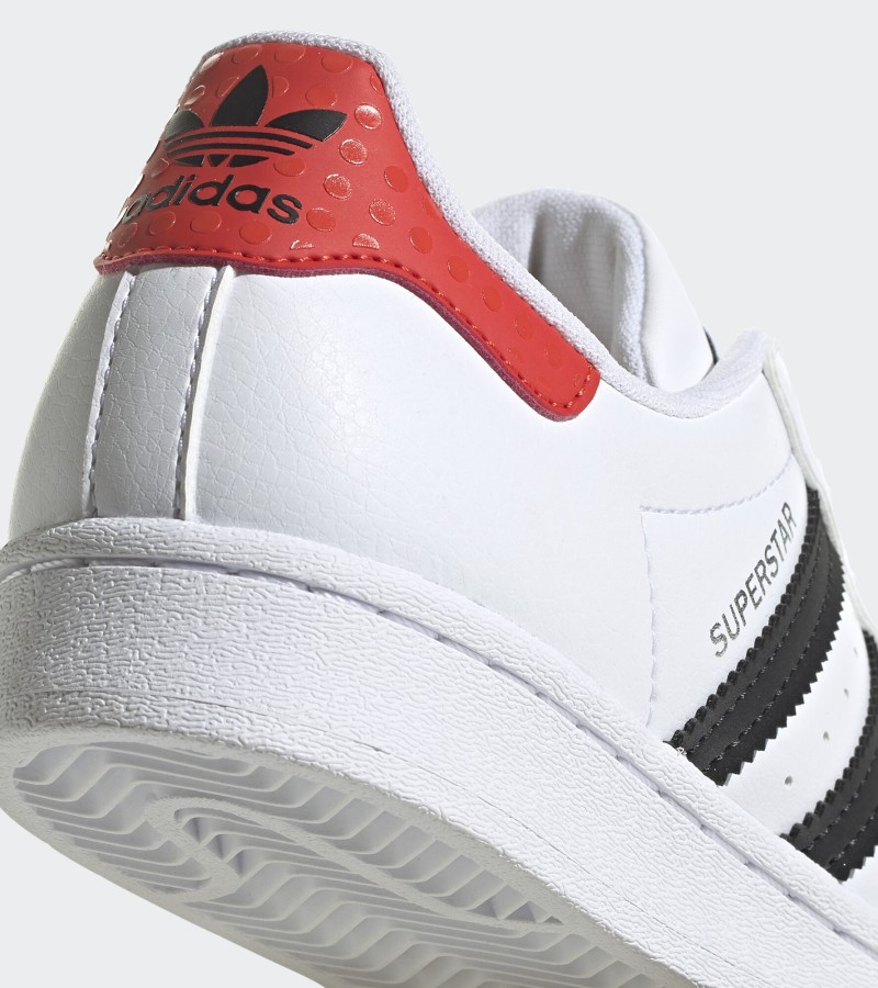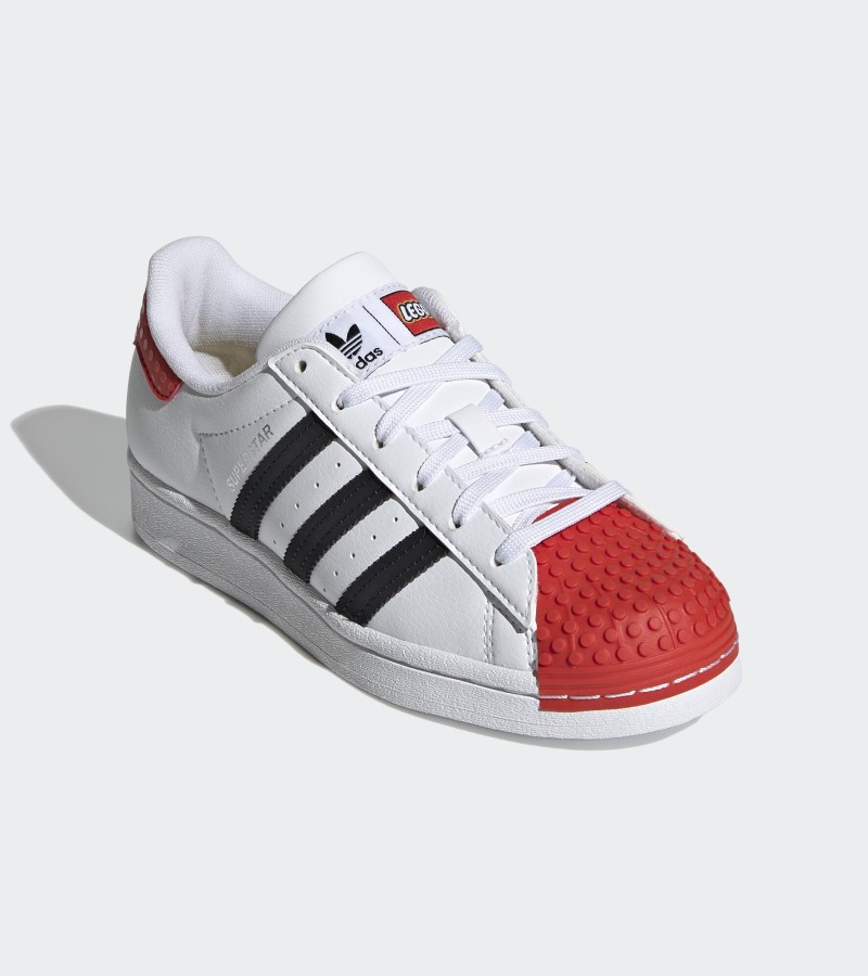 Style, fun and comfort is not a bad combination to have. Superstar LEGO® shoes feature iconic 3-Stripe branding and playful design details with LEGO brick-inspired texture on the shell-toe and heel-tab. Comfortable sockliners have been designed to allow for wearing around the clock – ideal for patio-to-playground scenarios.