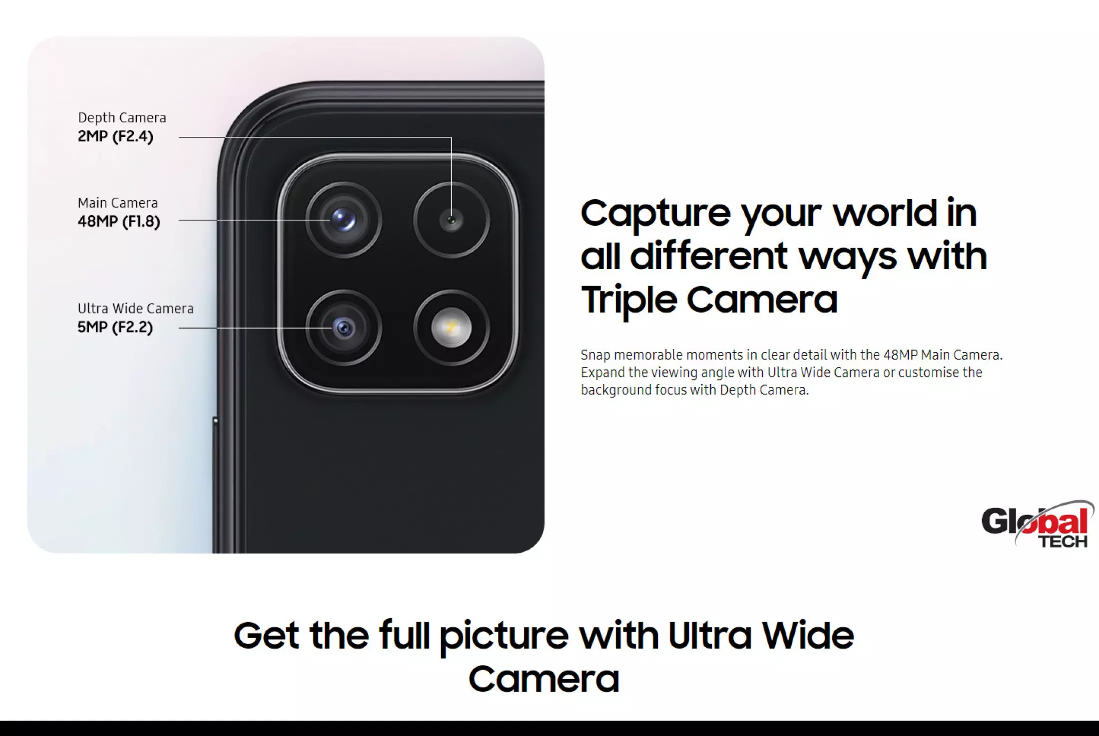 • Triple Rear Camera : 48 MP + 5 MP + 2 MP