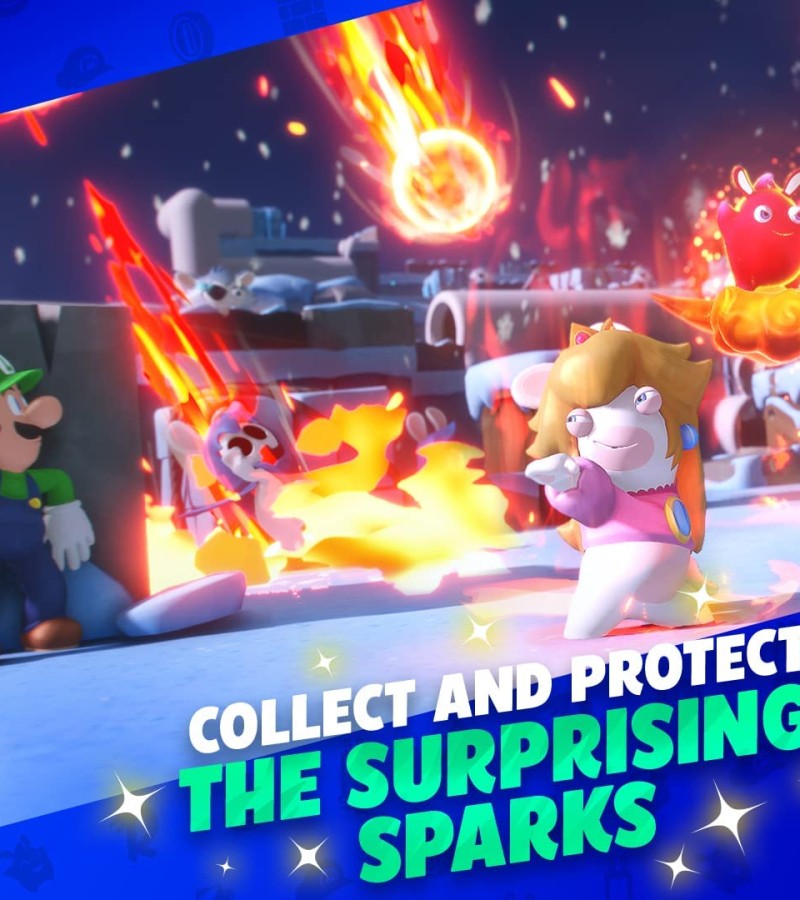 Team up with Mario, Luigi, Princess Peach, Rabbid Peach, Rabbid Luigi, and their friends on a galactic journey to defeat a malevolent entity and save your Spark companions. Explore planets throughout the galaxy as you uncover mysterious secrets and compelling quests!