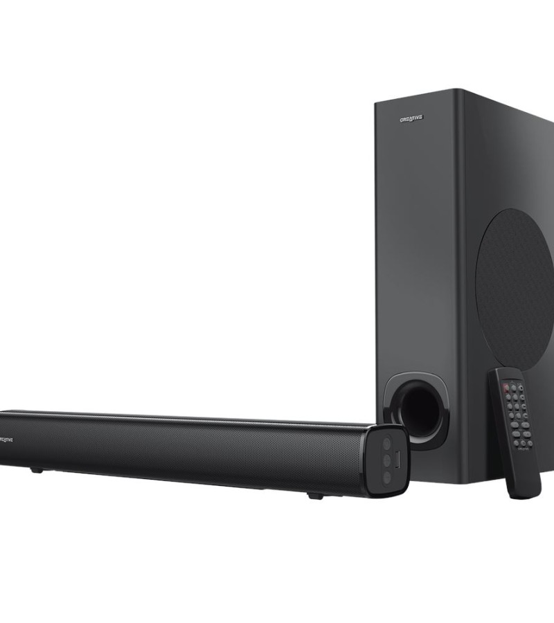 Creative Stage - 2.1 Channel Under-Monitor Soundbar with Subwoofer for TV, Computers, and Ultrawide Monitors, Bluetooth/Optical Input/TV ARC/AUX-in, Remote Control and Wall Mounting Kit